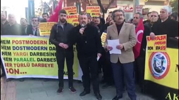 "Postmodern darbe"nin 22. yılı - ANTALYA - Gıyabi cenaze namazının kılınması - Açılan dövizlerden detay - Basın açıklaması"Postmodern darbe"nin 22. yılı - Antalya 'daki STK'ler tarafından 28 Şubat'ın 22. yılı nedeniyle basın açıklaması yapıldı, Mısır'da idam edilenler için gıyabi cenaze namazı kılındıANTALYA (AA) - Antalya 'da sivil toplum kuruluşlarınca, "postmodern darbe" olarak nitelenen 28 Şubat'ın 22. yılı dolayısıyla basın açıklaması yapıldı, Mısır'da idam edilenler için gıyabi cenaze namazı kılındı. Antalya Birlik ve Kardeşlik Platformu, Akdeniz Dayanışma Platformu, Antalya Platformu ve Antalya Gençlik ve Dayanışma Platformu tarafından "28 Şubat'tan Mısır'a zulme karşı kıyama" sloganıyla düzenlenen etkinlikte, Muratpaşa Camisi'nde ikindi namazının ardından gıyabi cenaze namazı kılındı.Namazın ardından Kapalıyol'da toplanan kalabalık, "28 Şubat'ı bitiriyoruz", "Mursi'ye ve Mısır'daki Müslüman kardeşlerimize bin selam", "Her türlü darbeye son", "Bir ağaç değil belki ama insan üzülüyor işte" yazılı pankartlar açtı.Grup adına basın açıklamasını okuyan 28 Şubat mağdurlarından Hakan Şimşek, tarihteki iki zalim olayı lanetlemek için toplandıklarını söyledi.