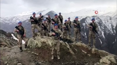 - Şemdinli’de görev yapan komando birliği, korona virüse karşı mücadele veren sağlık çalışanlarını desteklemek için alkışladı. Sağlık çalışanları da, görevi başında olan Mehmetçik’e cevap göndererek minnettarlıklarını sundu. Şemdinli Komando Taburu Ergültepe Üs Bölgesi’nde görevini yapan komandolar, korona virüse karşı amansız mücadele veren sağlık çalışanlarına destek olmak için alkışladı. Mehmetçik’in sağlık çalışanlarına destek mesajı gönderdiği videoda, “Bizler burada vatan nöbetindeyken geride bıraktığımız ailemiz ve sevdiklerimiz için canlarını tehlikeye atmak pahasına fedakarlık yapan sağlık çalışanlarımıza şükranlarımızı sunarız” ifadelerine yer verildi, ardından sağlık çalışanları alkışlandı. Kartal Koşuyolu Yüksek İhtisas Eğitim ve Araştırma Hastanesi görevlilerinden de Mehmetçik’e cevap gecikmedi. Sağlık çalışanları, kendilerine destek olan Mehmetçik’e selam gönderdiği videoda, “Şemdinli Komando Taburu Ergültepe Üs Bölgesi’nde sizler fedakarca vatan nöbetindeyken sizlere minnettarlığımızı sunarız. Geride bıraktığınız aileleriniz ve sevdikleriniz bizlere emanet. Sizler vatan sattında bizler sağlık sattında halkımız için nöbetteyiz. Vatandaşımız evinde kaldığı için çok teşekkürler Türkiye” ifadeleri yer aldı. Videonun sonunda sağlık çalışanları asker selamı ile Mehmetçik’i selamladı. İstanbul Sağlık Müdürlüğü’nün sosyal medya hesabı üzerinden paylaşılan video izleyenleri duygulandırdı. (CGK-