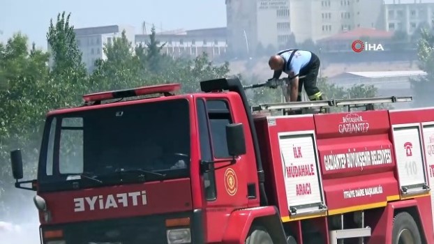 - Gaziantep 1.Organize Sanayi Bölgesi'nde, fabrikaların yoğun olarak bulunduğu bir noktadaki boş arazide çıkan yangın korkuttu. Yangın, ihbarın ardından bölgeye gelen itfaiye ekiplerince kontrol altına alındıktan sonra söndürüldü. Edinilen bilgiye göre, Gaziantep 1.Organize Sanayi Bölgesi'nde fabrikaların yoğun olarak bulunduğu alandaki boş bir arazide bilinmeyen bir nedenle yangın çıktı. Sıcak havanın da etkisiyle kısa sürede büyüyen yangın, arazideki çöpleri de tutuştururken, bölgede de yoğun duman oluşurdu. Dumanları gören çevredeki vatandaşlar durumu itfaiyeye bildirdi. Kısa sürede olay yerine gelen Gaziantep Büyükşehir Belediyesi ve Gaziantep OSB itfaiye ekipleri yangına müdahale ederek kısa sürede kontrol altına aldı. Kontrol altına alınan yangını kısa sürede söndüren itfaiye ekipleri, soğutma çalışmalarına ise devam ediyor. Yangının çıkış sebebi araştırılıyor.
