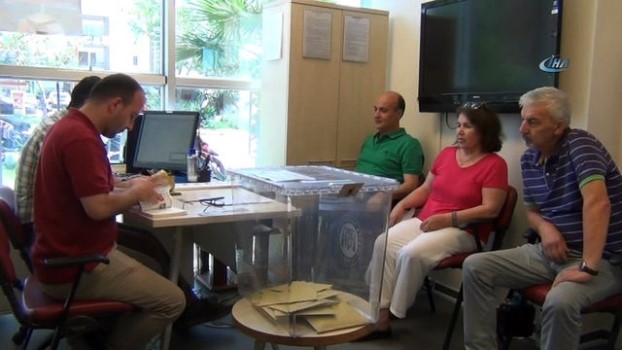 - 24 Haziran’da yapılacak olan Cumhurbaşkanlığı ve genel seçimleri öncesinde yurt dışında yaşayan gurbetçi vatandaşların tatil amacıyla geldikleri Türkiye’deki hudut kapılarında oy kullanma işlemleri Ramazan Bayramı’na rağmen tüm hızıyla sürüyor. Bayramda da, Türkiye’nin en batısındaki hudut kapısı olarak nitelendirilen Balıkesir’in Ayvalık ilçesinde Deniz Hudut Kapısı’ndaki A-1 nolu sandıkta süren oy kullanma işlemleri için görev yapan sandık kurulu başkan ve partili üyeler, herkes bayram yaparken görevlerinin başından ayrılmıyorlar. Sabah saat 08.00 ile 16.00, 16.00 ile 24.00 ve 24.00 ile 08.00 aralıklarında toplam 3 vardiya halinde kesintisiz 24 saat görev yapılan sandığın başında 3’er sandık başkanı, 3’er sandık başkan yardımcısı, 3’er AK Parti, 3’er MHP ve 3’er CHP temsilcileri gurbetçi vatandaşların güvenli bir şekilde oy kullanmaları için ter döküyor. Konuyla ilgili muhabirimize açıklamalarda bulunan sandığın başında MHP tarafından görevlendirilen Meral Özerden, yurt dışından Türkiye’ye gelip oy kullanan gurbetçi vatandaşlara bayram süresince hizmet vermekten duyduğu memnuniyeti ifade ederek, “Bu kez seçim süreci Ramazan Bayramı’nı içine aldı. Ama bizde her şeye rağmen görevimizin başındayız.” dedi.