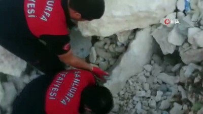 Şanlıurfa’da çöken toprak ve kaya yığınının altında kalan yavru köpek kurtarıldı