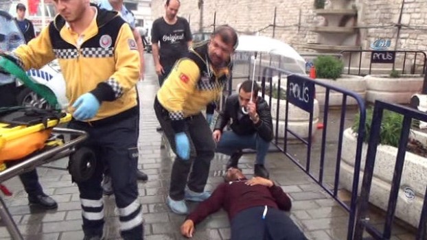 - Taksim'de şeker komasına giren Fas uyruklu bir vatandaş için polis seferber oldu. Sağlık ekipleri adamı ambulansa taşırken, yağmurlu havada adamın ıslandığını gören polis memuru, kendisi ıslanırken şemsiyesini adamın üstünü tuttu. Taksim Meydanı'nda şeker komasına giren bir kişi vatandaşları ve polisi seferber etti. Edinilen bilgilere göre, 38 yaşındaki Fas uyruklu olduğu öğrenilen bir vatandaş şekerli yiyecekleri çok tüketince yağmurlu havada şeker komasına girerek, polis ekiplerinin bulunduğu bölgeye düştü. Yerde birinin hareketsiz yattığını gören polis ekipleri adamın yardımına koşarak, sağlık ekiplerine haber verdi. İhbar üzerine olay yerine gelen sağlık ekipleri ilk müdahaleyi olay yerinde yaparken, yağmurlu havada adamın ıslandığını gören polis memuru kendisi ıslanırken şemsiyesini adamın üstünü tuttu. Bu sırada da polis memurunun yağmurda ıslanması dikkat çekti. (ZA-MD-