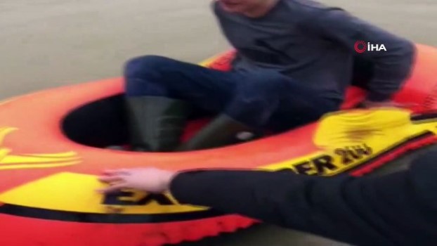 Sel suları köprüyü aştı, su ile dolan caddelerde şişme botla keyif yaptılar