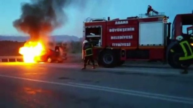 - İtfaiye ekiplerinin yanan araca müdahalesiAdana'da seyir halindeki araç yandıADANA (AA) - Adana'nın Karaisalı ilçesinde, seyir halindeki otomobil yandı.Alınan bilgiye göre, Necalin Hankaş yönetimindeki 01 EA 313 plakalı otomobil, Adana Karaisalı kara yolunda aracın gösterge kısmındaki elektrik kablolarının şase yaparak tutuşması sonucu alev aldı.Çevredekilerin haber vermesi üzerine olay yerine gelen Adana Büyükşehir Belediyesi itfaiye ekiplerinin müdahalesiyle yangın söndürüldü.Yangında otomobil kullanılamaz hale geldi.