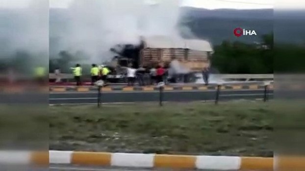 - Kastamonu’nun Tosya ilçesinde seyir halindeyken motor kısmından alev alan talaş yüklü kamyon kullanılamaz hale geldi. Olay, akşam saatlerinde Kastamonu'nun Tosya ilçesi D100 Karayolunda meydana geldi. Edinilen bilgiye göre, Tosya’dan Kastamonu istikametine ilerleyen talaş yüklü kamyonun motor kısmı aniden alev aldı. Adı henüz bilinmeyen sürücü ise kamyonu durdurup, hemen araçtan indi. Yangın kısa sürede büyürken, ihbarla olay yerine itfaiye ekipleri sevk edildi. Yangın, olay yerine gelen itfaiye ekiplerinin müdahalesi sonucu talaşlara sıçramadan kontrol altına alındı. Güvenlik güçleri ise yolu trafiğe kapatarak, güvenlik önlemi aldı. Yangında yaralanan olmazken, kamyon kullanılmaz hale geldi. Yangın ile ilgili inceleme başlatıldı.