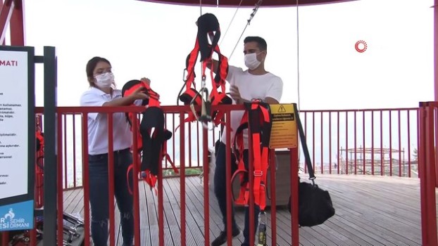Türkiye’nin en büyük tematik kent ormanı olan Pamukkale Belediyesi Seyir Tepesi Şehir Ormanı ziyaretçilerini bekliyor. 2020 yılının Ekim ayında çalışmaların tamamlanmasından sonra hizmete giren Seyir Tepesi Şehir Ormanı, vatandaşların büyük ilgisini çekmişti. Dünyayı ve ülkemizi etkileyen korona virüs ile mücadele devam ederken İçişleri Bakanlığı’nın genelgesi çerçevesinde 21 Kasım 2020 tarihinden itibaren Seyir Tepesi faaliyetlerine geçici olarak ara vermişti. Son açıklanan ve 1 Haziran’dan itibaren geçerli olan normalleşme genelgesi ile Pamukkale Belediyesi Seyir Tepesi Şehir Ormanı kapılarını vatandaşlara açtı. Seyir Tepesi, yeni bir genelgeye kadar hafta içi saat 10.00 ile 21.00, Cumartesi günleri ise 09.00 ile 21.00 saatleri arasında açık olacak. Türkiye’nin en büyük tematik kent ormanı olan Seyir Tepesi vatandaşları bekliyor 405 bin metrekarelik alanda kurulan Seyir Tepesi Tarım ve Orman Bakanlığı’na başvuru yapılan 1550 projenin en büyüğü olarak dikkat çekiyor. 27 metrelik dev horoz heykeli en çok rağbet gören noktalardan biri olurken, Denizli manzarasını farklı bir şekilde izleme imkanı sunan seyir salıncağının yanı sıra, macera parkuru, dağ kızağı, 5 kuleli zipline ve kay kay parkuru ise macera severlerin ilgisini bekliyor. Seyir Tepesi’ne girişlerde Korona virüs önlemleri çerçevesinde herkesin ateş ölçümü yapılırken, dezenfektanlarda vatandaşların kolaylıkla ulaşabilecekleri noktalarda bulunuyor. Çocuklar, çizgi film kahramanlarının temalarından oluşturulan oyun gruplarında zaman geçirirken, Seyir Tepesi’ne gelen Denizlililer, eşsiz şehir manzarasında fotoğraf çektirme imkanı buluyor. Şelale Park, Turan Yolu, Sonsuz Bahçe, kamp ve piknik alanlarının da yer aldığı Seyir Tepesi’nde vatandaşlar kafeteryalarda çay kahve içebilirken, Seyr-Et Restoran’daki eşsiz lezzetleri de tatma imkanına sahip olabilirler. Pamukkale Belediye Başkanı Avni Örki, Seyir Tepesi Şehir Ormanı’nın yeniden hizmete açıldığını ifade ederek; “Türkiye’nin en büyük tematik kent ormanı olan Seyir Tepesi’ne tüm halkımızı bekliyoruz” dedi.