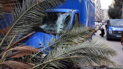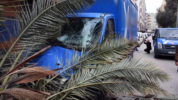 - Araçların üzerine devrilen palmiye ağacından detaylar - Kamyonet sürücüsü Serdar Eşiyok'un konuşması - arar gören araçlardan detaylar Hatay 'da şiddetli rüzgar - İskenderun ilçesinde park halindeki iki aracın üzerine ağaç devrildiHATAY (AA) - Hatay 'ın İskenderun ilçesinde şiddetli rüzgar hayatı olumsuz etkiledi.Kurtuluş Mahallesi'nde bulunan Hamidiye Cami'nin bahçesindeki palmiye ağacı, şiddetli rüzgar nedeniyle, park halindeki otomobil ve bir kargo şirketine ait kamyonetin üzerine devrildi.Araçlarda hasar oluşurken, olay yerine gelen polis ekipleri sokağı trafiğe kapattı. İtfaiye ekiplerinin devrilen ağacı kaldırmasının ardından sokak trafiğe açıldı.Kamyonet sürücüsü Serdar Eşiyok, yaptığı açıklamada, olayın, aracın dışında olduğu sırada meydana geldiğini belirterek, "Ses duydum, bir baktım, ağaç üzerime doğru geliyor. Hemen uzaklaştım. Çok şükür altında kimse yoktu." dedi. Bu arada, Akbağlar Mahallesi'nde de bir dükkanın tabelasının yerinden kopması sonucu park halindeki bir otomobilin zarar gördüğü öğrenildi. ArgoPolisPalmiye AğacıPolis EkipleriŞiddetli Rüzgar