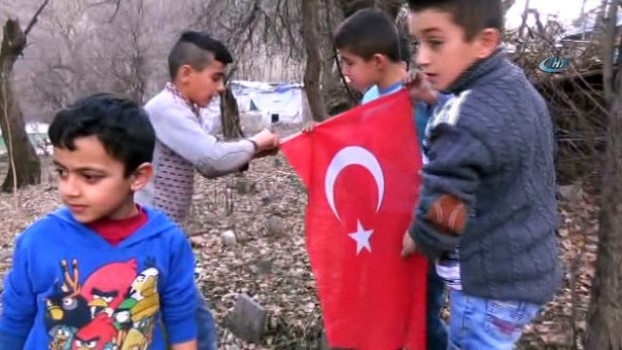 Sınır çocuklarının bayrak sevgisi...Beytüşşebaplı çocuklar, yerde buldukları bayrağı köy meydanına astı