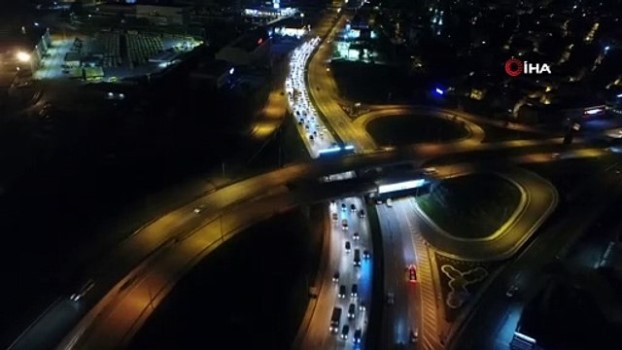 - Bursa'da uygulanan sokağa çıkma kısıtlamasının ardından saatler 24.00 olmasıyla adeta kendini dışarıya atan Bursalılar kilometrelerce araç kuyruğu oluşturdu. Günde ortalama 250 bin aracın geçtiği Acemler Bulvarı'nda adeta duran trafik havadan böyle görüntülendi. Korona virüs tedbirleri kapsamında Bursa'da da uygulanan 2 günlük sokağa çıkma yasağı saat 24.00 itibariyle sona erdi. Yasağın sona ermesinin ardından 2 gündür evlerinden dışarıya çıkmayan Bursalılar adeta kendilerini sokaklara attı. Gece geç saatler olmasına rağmen dışarıya çıkan Bursalılar, günde ortalama 250 bin araç geçişinin olduğu ve bu özelliğiyle Fatih Sultan Mehmet Köprüsü'nden bile daha fazla araç geçişinin olduğu Acemler Kavşağı'nda trafik adeta durma noktasına geldi. Adım adım ilerleyen araçların oluşturduğu kilometrelerce kuyruk havadan böyle görüntülendi.