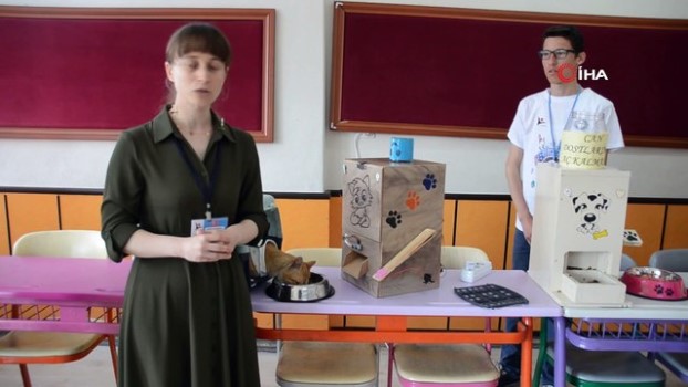 - Çorum'un Kargı ilçesinde ortaokul öğrencileri tarafından sokak hayvanları için otomatik mama makinesi tasarlandı. TÜBİTAK Bilim fuarında görücüye çıkan mama makinesini gören Belediye Başkanı Zeki Şen makinenin çoğaltılarak ilçenin çeşitli yerlerine konulacağı sözünü verdi. Atatürk Ortaokulu’nda gerçekleştirilen TÜBİTAK Bilim Fuarı’nın açılış kurdelesini Kargı Kaymakamı Hasan Taş ve Belediye Başkanı Zeki Şen’inde kesti. Fuarda birbirinden ilginç 22 proje sergilendi. Protokol üyeleri tüm standları gezerek öğrencilerin proje sunumlarını dinledi. Öğretmen Fatma Akpınar ve 3 öğrenci tarafından sokak hayvanları için tasarlanan ‘’ Can dostlarımız aç kalmasın’’ isimli otomatik mama makinesi projesi ise protokol üyeleri ve ziyaretçilerin ilgilisi çeken projelerden birisi oldu. Tasarlanan mama makinesi, ön tarafından bulunan sensör sayesinde makinenin önüne gelen kedi veya köpeği algılayarak belirli miktarda mama veriyor. Makine ayrıca manuel olarak da çalışabiliyor. Yan tarafta bulunan pedala basıldığında yine mama veriyor. Proje hakkında bilgiler veren Proje Koordinatörü Fatma Akpınar, sokak hayvanlarının yemeğe nasıl daha kolay ulaşabileceğini düşünerek böyle bir proje geliştirdiklerini belirterek, projemizin ismi can dostlarımız aç kalmasın. Sokaktaki hayvanların mamaya veya yiyeceğe daha kolay nasıl ulaşabilir sorusuyla yola çıkarak öğrencilerimizle birlikte bu mama makinelerini yaptık. Mama makinelerimiz pedallı veya arduino olarak iki şekilde çalışıyor. Pedala basıldığı zaman mama otomatik olarak hazneye düşüyor. İkinci bir çalışma yöntemi olan arduino ise kedi veya köpek makineye 5 cm yaklaştığı zaman otomatik olarak arduino pedalı çeviriyor ve mama hazneye düşüyor. Bu sayede kedi veya köpeklerimiz mamaya kolayca ulaşabiliyor’’ dedi.