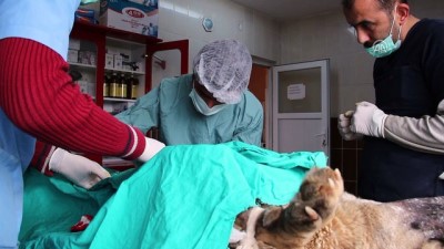 - Sokak köpeğinin memesinden 2 kilogramlık kitle çıkarıldı - Köpeğin karnındaki kitleli halinden görüntü - Köpeğe sakinleştirici verilmesi - Ameliyattan görüntü - Sivas Belediyesi Veteriner Hekimi Şahin Avcı'nın açıklamaları - Köpeğin kitlesi alındıktan sonraki haliSokak köpeğinin memesinden 2 kilogramlık kitle çıkarıldıSİVAS (AA) - Sivas 'ta bir sokak köpeğinin karın bölgesinden ameliyatla 2 kilogram ağırlığında kitle alındı. Sivas Belediyesinden yapılan yazılı açıklamaya göre, belediyeye ait hayvan barınağına, bir vatandaş hasta sokak köpeği olduğu ihbarında bulundu.İhbarı değerlendiren Veteriner İşleri Müdürlüğü ekipleri, köpeği alarak barınağa getirdi.Barınakta yapılan muayenede, köpeğin memesinde kitle tespit edildi. Kitle nedeniyle oldukça zayıflayan köpeğin ameliyat edilmesine karar verildi. Yaklaşık 2,5 saat süren ameliyatın ardından köpeğin memesinden 2 kilogramlık kitle çıkarıldı. Sivas Belediyesi Veteriner Hekimi Şahin Avcı, zor bir ameliyat yaptıklarını belirterek, "Duyarlı bir vatandaşın ihbarı üzerine memesinde tümör tespit ettiğimiz hayvanımıza gerekli tedaviyi uyguladık. Yaklaşık 3 hafta sürecek tedavinin ardından hayvanımız sağlığına kavuşacak." ifadelerini kullandı. Sokak KöpeğiHayvan BarınağıYazılı AçıklamaAmeliyatHayvan