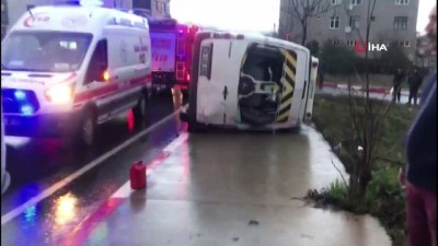 Sultanbeyli’de seyir halinde olan servis aracı devrildi