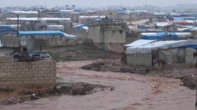 Suriye’nin İdlib kentindeki Atme sığınmacı kampı sel nedeniyle sular altında kaldı