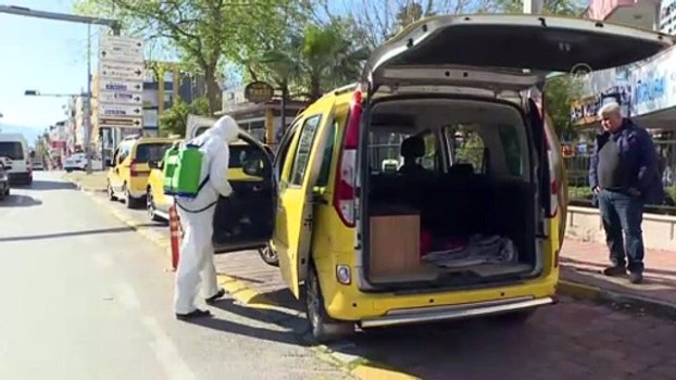 Taksiler ve durakları dezenfekte ediliyor - ANTALYA