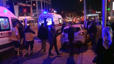 ( İSTANBUL -ÖZEL)- Otomobil başka araca çarpıp AVM önünde takla attı: 2 yaralı İSTANBUL