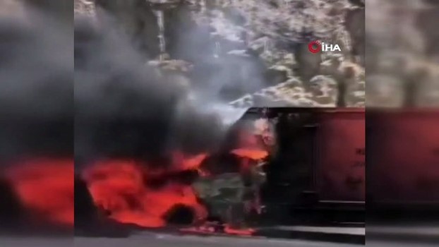 Tıbbi atık kamyonu seyir halindeyken alev aldı