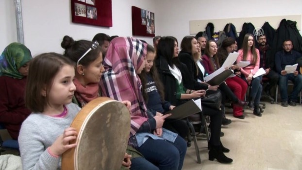 - Muş İbni Sina Anadolu Lisesi konferans salonunda koronun hazırlık çalışmalarından görüntüler - Koronun şarkı seslendirmesi - Koro Şefliğini yürüten Ercan Ülger'in konuşması - Emel Vatansever'in konuşması - Müzik öğretmeni Betül Işık'ın konuşması Muş 'ta Türk Sanat Müziğine ilgi artıyorMUŞ (AA) - Muş 'ta, kamu kurumlarında çalışan personel ve müzik öğretmenleri tarafından kurulan Türk Sanat Müziği korosu, yoğun ilgi görüyor. Muş Valiliği tarafından 3 yıl önce 25 kişilik ekiple kurulan koroda şu anda 40 kişinin görev yapıyor. Muş İbni Sina Anadolu Lisesi konferans salonunda hazırlık çalışmalarına devam eden koro üyeleri, Türk Halk, sanat ve pop müziğinden eserler seslendirdi. Muş Alparslan Üniversitesi İslam Bilimleri Fakültesinde öğretim görevlisi olan ve Koro Şefliğini yürüten Ercan Ülger, yaklaşık 3 yıl önce Vali Seddar Yavuz'un talimatı doğrultusunda koroyu kurduklarını anlattı.İl Kültür Müdürlüğü bünyesinde Valilik Korosu olarak 3 yıldır faaliyet gösterdiklerini dile getiren Ülger, "Koromuz da katılım olarak baktığımızda öğretmen, emniyet personeli ve diğer kamu kuruluşlardan bir çok memur ve ev hanımları katılıyor. Şu anda nisan ve mayıs ayında yapacağımız konserler için hazırlık çalışmamıza başladık. Çalışmalarımızı profesyonel anlamda yapmaya çalışıyoruz.Bağlama, gitar, ud şeklinde başladık. Daha sonra koromuza yeni gelen üyelerle birlikte kanun, klasik kemence, tambur, saksafon enstrümanlarımız dahil oldu. Amaç kültürümüzü buradaki insanlarımıza paylaşmaktır." diye konuştu. Kuruluşundan bu yana koronun solistliğini yapan Emel Vatansever ise, ev kadını olduğunu belirterek, çocuklarının da sanatla ilgilendiğini ifade etti. Sanat müziğine olan ilgisi nedeniyle koroya katıldığını aktaran Vatansever, "Ondan dolayı katıldım. Burada bilmediğimiz birçok kendi özümüze ait olan parçaları öğrendik. Notaları öğrendik. Eşim ve çocuklarımda müzikle ilgilendiği için arada evde fasıllar yapıyoruz." dedi. Muş 'un Konukbekler Beldesinde görev yapan müzik öğretmeni Betül Işık da, koroya yeni katıldığını, güzel konserler vermek için hazırlıklara ara vermeden devam ettiklerini vurguladı. Öğretim GörevlisiÖğretmenlerMüzik ÖğretmeniÖğretmenKonferans