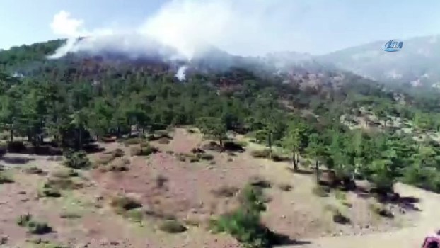 ( UŞAK -TOPLU) - Ekipler havadan ve karadan söndürme çalışmalarını sürdürüyor UŞAK