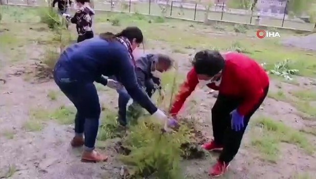 Van`da 14 günlük karantinada kalanlar fidan dikti