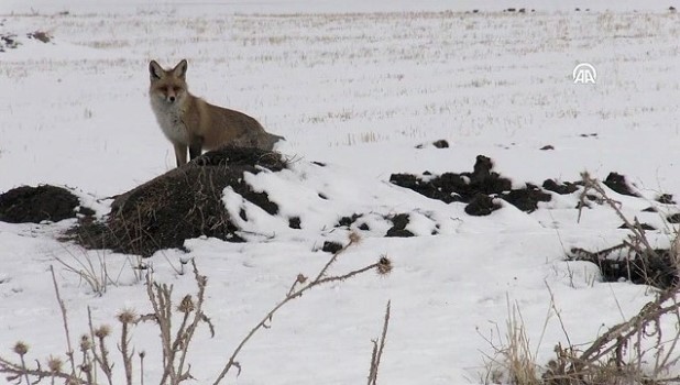 - Tikinin arazide yiyecek araması - Tilkiden görüntüler - Tilkinin beslenmesiVAN (AA) - Van 'da kar yağışının ardından yiyecek bulmak için yerleşim yerlerinin yakınlarına kadar gelen tilki, görüntülendi.İpekyolu ilçesinde bir süre önce yoğun yağış sonrası kentin yüksek kesimleri ve dağlık alanlar karla kaplandı.Erçek ile Karagündüz mahalleleri arasındaki yola inen tilki, uzun süre çevrede yiyecek bulmaya çalıştı.Yoldan geçen araçlara aldırış etmeden çevrede bulduklarıyla karnını doyuran tilki, sonra uzaklaşarak gözden kayboldu.Tilkinin yiyecek arayışı AA muhabirlerince görüntülendi.