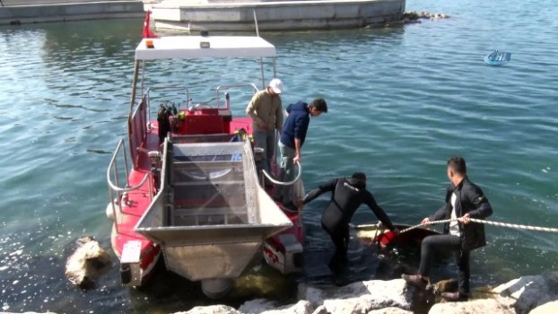 ( VAN )- Dalgıçlar yaparken, deniz süpürgesi ise yüzey temizliği yapıyor- Gölde günlük ortalama 1,5 ton çöp toplanıyor VAN
