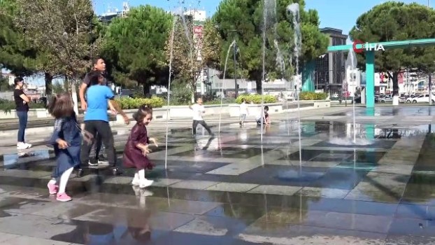 Havayı güzel görünce kendilerini suyun altına attıklarını ifade eden öğrenciler “Sonbahar olmasına rağmen hava çok güzel. Biz de eğlenmek için su parkına geldik. Burada fıskiyelerin üstünden geçerek ıslanıyoruz. Biraz üşüsek de çok eğleniyoruz. Mevsimin son güzel havalarını değerlendiriyoruz” dedi.