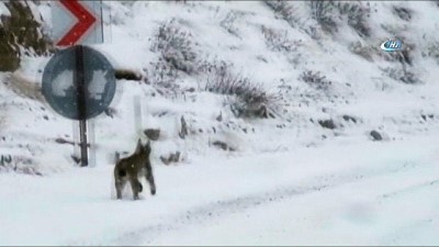 ( SİVAS -ÖZEL-HD)- Sivas'ta kış aylarında doğada yiyecek bulmakta güçlük çeken ve nesli tükenmekte olan hayvanlar kategorisinde yer alan vaşak yerleşim yakında bölgelere indi SİVAS