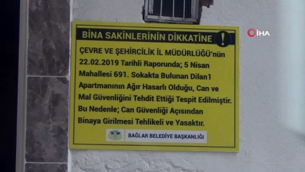 - Diyarbakır’ın Bağlar ilçesinde bulunan 7 katlı bir bina yıkılma tehlikesi taşıdığından dolayı boşaltma kararı alındı. Diyarbakır’ın Bağlar ilçesi 5 Nisan Mahallesi 691. Sokakta bulunan bir bina yıkılma tehlikesi oluşturduğundan dolayı Çevre ve Şehircilik İl Müdürlüğünce boşaltılma kararı alındı. 7 Kat 35 daireden oluşan Dilan Apartmanı kolonlarında oluşan hasardan dolayı bina girişine “Bu binaya girilmesi tehlikeli ve yasaktır” tabelası asıldı. İkinci bir Kartal vakası yaşanmadan önlemin alınması gerektiğini söyleyen İnşaat Mühendisler Odası Diyarbakır Şube Başkanı Nihat Noyan bina hakkında açıklama yaptı. Noyan tarafından yapılan açıklamada, “Diyarbakır'ın Bağlar ilçesi 5 Nisan Mahallesi 691. Sokakta bulunan Dilan Apartmanında Çevre ve Şehircilik İl Müdürlüğünün 22 Şubat 2019 tarihinde hasarlı olduğuna dair raporuna istinaden bina girişine tabela asılarak bu binanın tehlike arz ettiği belirtilmiştir. İMO Diyarbakır Şube olarak durumu tespiti ile ilgili yerinde yaptığımız inceleme, üç başlık altında değerlendirilmiştir. Kolan kesitiyle ilgili hasar, beton ezilmesi sonucu kolonların taşıma güçlerinden kaynaklı hasarlar, sonradan eklenen kiriş ve kolonlar şeklinde inceleme yapılmış. Orta bölgedeki kolonlarda meydana gelen ani hasar nedeniyle oluşan yapısal hasarlar tespit edilmiştir. Beton dayanımının düşük olması, donatı düzenleme esaslarına uyulmaması, kolon ebatlarının mevcut yükü karşılayamamasından dolayı bir kolonun betonunda ezilme tespit edilmiş diğer üç kolonda ise çatlaklar meydana geldiği tespit edilmiştir. Kirişlerde de yer yer çatlaklar meydana geldiği gözlemlenmiştir. Bu ön inceleme sonucunda yapının taşıma gücü yitirdiği tarafımızca değerlendirilmiştir. Yapı mevcut haliyle can ve mal güvenliği tehdit etmektedir. Bundan dolayı yapının acilen boşaltılması ve çevre güvenliğinin alınması gerekmektedir. İlgili kurumlara çağrımızdır, ikinci bir Kartal vakası yaşanmadan görevlerini yapmaya davet ediyoruz. TMMOB İnşaat Mühendisleri Odası olarak bu işin takipçisi olacağımızı belirtiyoruz” denildi. “Terör zararı kapsamına alınsın” Yıkılma tehlikesi yaşanan bina sakinlerinden Veli Mahtiyar ise, binayı boşaltacak güçlerinin olmadığını belirtti.
