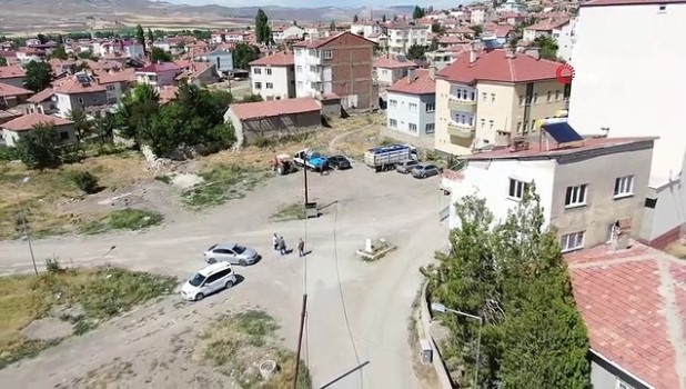 ( SİVAS -ÖZEL-DRONE)- Sivas’ın Şarkışla ilçesinde belediye tarafından yapılan çevre düzenlemesi sonrasında yol ortasında kalan tek mezar görenleri şaşırtıyor SİVAS