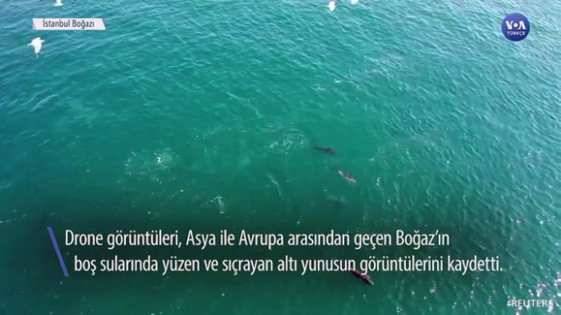 Corona virüsünün yayılmasını önlemek amacıyla uygulanan sokağa çıkma yasağıyla Boğaz trafiğinin azalmasını fırsat bilen bir yunus sürüsü, berrak ve sakin suların tadını çıkardı