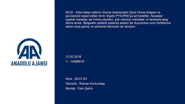 - Tank yüklü tırların geçişi - Çok namlulu roketatarın atışlarından detayZeytin Dalı Harekatı - Afrin bölgesinde belirlenen terör hedefleri ateş altına alınırken, sınır birliklerine askeri araç takviyesi sürüyorKİLİS (AA) - Zeytin Dalı Harekatı kapsamında Suriye'nin Afrin bölgesinde belirlenen terör hedefleri ateş altına alındı.TSK tarafından hudutlar ile bölgede güvenlik ve istikrarı sağlamak, Afrin bölgesinde PKK/KCK/PYD - YPG ve DEAŞ mensuplarını etkisiz hale getirmek, bölge halkını terör örgütü üyelerinin baskı ve zulmünden kurtarmak amacıyla 20 Ocak'ta başlatılan Zeytin Dalı Harekatı devam ediyor. Kilis - Hatay hattının Suriye kesimindeki Şeyh Horoz bölgesi ve çevresinde tespit edilen terör örgütü PYD/PKK'ya ait hedefler, havadan uçaklar karadan ise fırtına obüsleri, çok namlulu roketatar ve tanklarla ateş altına alındı.Bölgeden şiddetli patlama sesleri de duyulurken sınır birliklerine askeri araç gereç ve personel takviyesi ise sürüyor. Askeri AraçGesiTerör Örgütü
