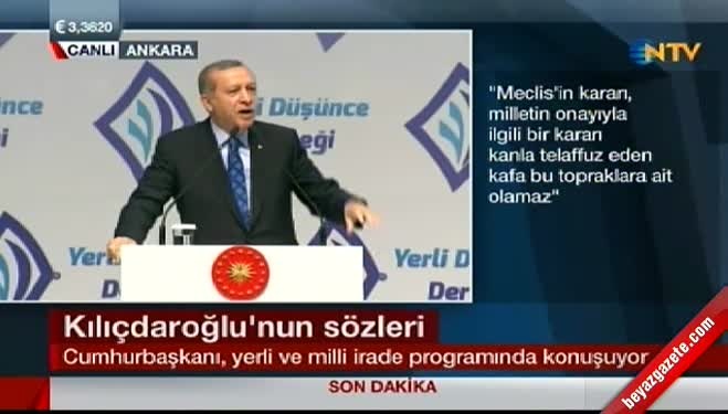 Burada bir konuşma yapan Erdoğan, CHP lideri Kılıçdaroğlu'nun 'Başkanlık sistemini kan dökmeden gerçekleştiremezsiniz' sözlerini eleştirdi.