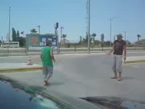 otoparkta eglenen gençlerden birinin ayağı,acaba neden yerden kesiliyor?