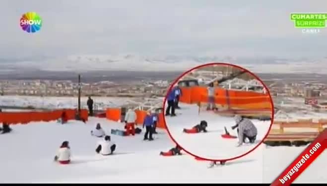İkili karlar içinde eğlenceli anlar yaşarken talihsiz bir olay yaşandı. Çağla Şikel'in küçük oğlu Uzay yürekleri ağza getirdi. Annesiyle birlikte kızak keyfi yapan küçük Uzay, kontrolü kaybedince pist kenarındaki bir kadına çarptı. Çarpmanın etkisiyle kızak altından kayan Uzay, taklalar attı.