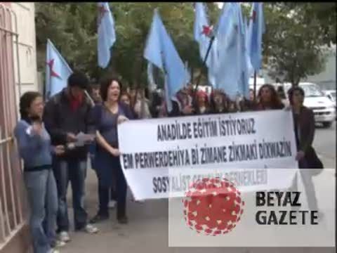 İl Milli Eğitim Müdürlüğü önünde toplanarak, "Kürtçe eğitim istiyoruz" başlığı altında eylem yapan gruba bir vatandaş tepki gösterdi. "Türkiye'de Türkçe ana dildir" diyen vatandaşla grup arasında sözlü tartışma yaşandı. Sosyalist Gençlik Derneği üyesi bir grup, öğlen saatlerinde İl Milli Eğitim Müdürlüğü önünde toplandı. Ellerinde "Ana dilde eğitim istiyoruz" pankartı bulunan grup adına yapılan açıklamada, "Ana dilde eğitim alamıyoruz.