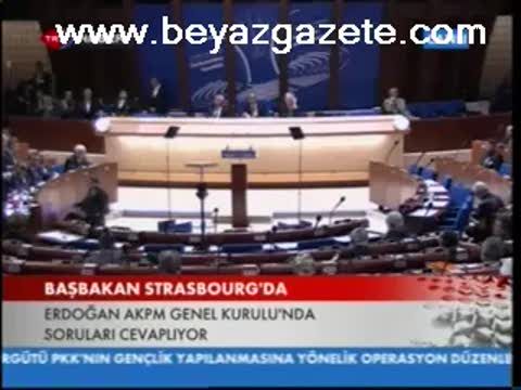 Başbakan Erdoğan, Strasbourg'da Avrupa Komisyonu Parlamenterler Meclisi'nde yaptığı konuşmada, 'Bazı tutuklamaların Avrupa'da basın özgürlüğüne müdahale olarak algılandığını biliyorum. Avrupa'da darbelere çanak tutan gazeteci olmadığını da biliyorum. Türkiye'de gazetecilik faaliyetinden dolayı tutuklu olan kimse yok. Avrupalıların konuyu objektif kaynaklardan ve yerinde yapmalarını istiyorum. Biz hukukun üstünlüğünün tarafında olmalıyız. Çatışmanın, zulmün yanında değil uzlaşmanın yanında olmalıyız.' dedi.