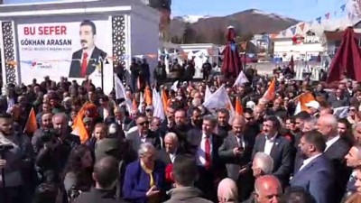 -Cevdet Yılmaz'ın belediye başkan adayı Gökhan Arasan'ı sahneye çağırması ve katılımcılara karanfil atması