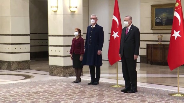- Cumhurbaşkanı Recep Tayyip Erdoğan'ın salona gelişi - Letonya'nın Ankara Büyükelçisi Peteris Vaivars'ın Cumhurbaşkanı Recep Tayyip Erdoğan'a güven mektubu sunması - Hatıra fotoğrafı çekimiLetonya Büyükelçisi Vaivars, Cumhurbaşkanı Erdoğan'a güven mektubu sunduANKARA (AA) - Türkiye Cumhurbaşkanı Recep Tayyip Erdoğan, Letonya'nın Ankara Büyükelçisi Peteris Vaivars'ı kabul etti.Cumhurbaşkanlığı Külliyesi'ndeki kabulde, Büyükelçi Vaivars, Erdoğan'a güven mektubu sundu.Vaivars'ın eşi ve bazı büyükelçilik mensuplarını Cumhurbaşkanı Erdoğan'a takdiminin ardından hatıra fotoğrafı çektirildi.