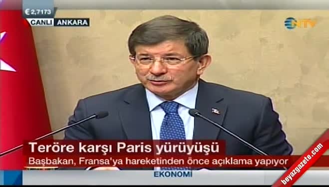 Başbakan Fransa Paris Ahmet Davutoğlu
