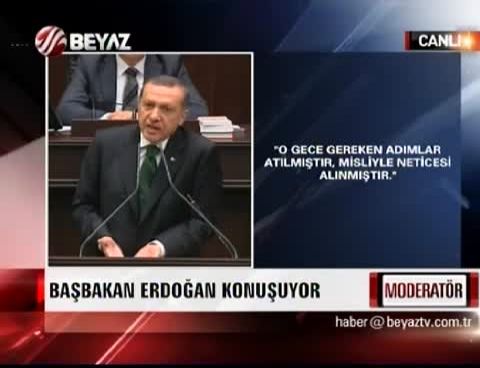Biz sizin cemaziyelevvelinizi biliyoruz. Amerika ' nın Başkanı, affedersiniz, orada tırabzanın üzerinde otururken, sizin devamlı takdir ettiğiniz, izinden, arkasından gittiğiniz liderler de el pençe divan duruyordu. Biz böyle bir tabloyu yaşamadık, yaşamıyoruz ve bu milletin onuru neyi gerektiriyorsa o tabloyu, onu görüntüleri veriyoruz '' diye konuştu.