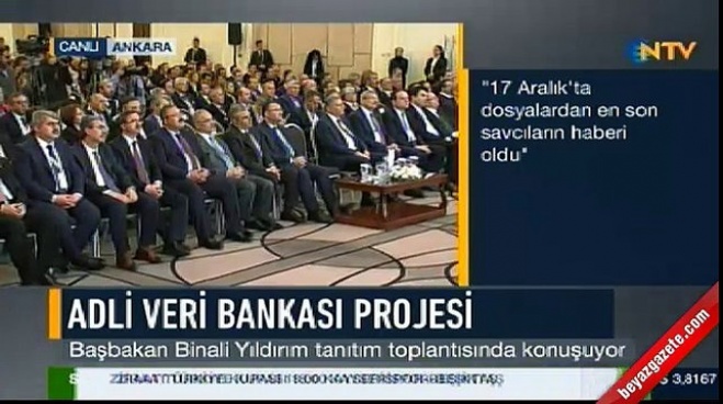 Başbakan Binali Yıldırım, Ankara'da, Adli Veri Bankası tanıtım töreninde konuştu. 17 Aralık döneminde yaşadığı bir olayı anlatan Başbakan, ' En yakınımdaki insan için dinleme yapılmış. Ben bunu öğrendim o dönem ki İçişleri, Adalet Bakanı'na sorduğumda böyle bir şey yok dediler. ' dedi. BaşbakanBinali Yıldırım