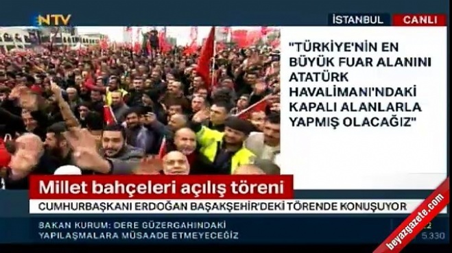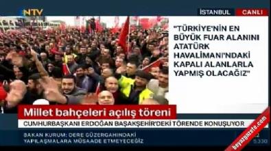 İstanbul'un 5 millet bahçesi için düzenlenen törende konuşan Başkan Erdoğan ' Çevrecilik adına yakıp yıkanlar, Gezi olaylarını yapanlar, ülkenin hayrına her işin karşısına dikilenler, gelip şu millet bahçelerine baksınlar ve gerçek çevrecilik nedir görsünler ' dedi.