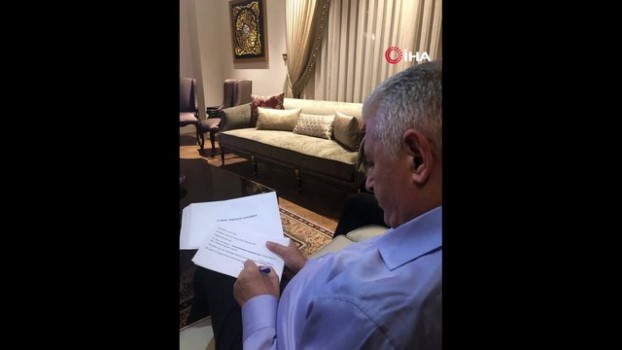 Binali Yıldırım teşekkür konuşmasını hazırlıyor