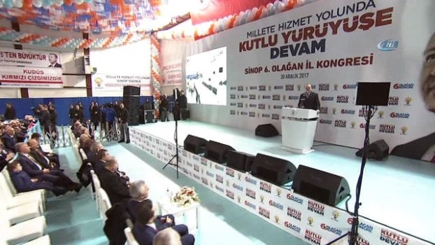 Cumhurbaşkanı Erdoğan, AK Parti 6. İl Kongresi nedeniyle Sinop’taydı. Kongrede parti üyeleri ve vatandaşlar ile bir araya gelen Cumhurbaşkanı Erdoğan’ın hedefinde Cumhuriyet Halk Partisi Genel Başkanı Kemal Kılıçdaroğlu vardı. 15 Temmuz hain darbe gecesi yaşanan olayları anlatan Erdoğan, Kılıçdaroğlu’nu eleştiri yağmuruna tuttu. Erdoğan, “Bay Kemal tankları gördüğü zaman kaçıveriyor. Nereye kaçıyor. Bakırköy Belediyesine, kahvesini içiyor. O gece saat 23.17 milleti meydanlara davet etmişiz ve gecenin 2’sine doğru Atatürk Havalimanına indik. Çünkü benim milletim oradaydı. F-16’lar uçuyormuş bizim için hiç önemli değil. Biz Allah’a sığındık ve yola çıktık. Kemal Kılıçdaroğlu da, bir televizyon ve ya radyo programında konuşup, ‘darbe olursa önce ben çıkarım’ diyor tankın önüne. Hakikatten de çıktı be. Türkiye’de yalanı bunun kadar iyi söyleyen ikinci bir kişi daha bulamazsınız” diye konuştu.