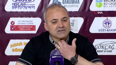 “Yönetimimiz bir hedefe oynama peşinde” Karşılaşmanın hakemleri hakkında görüşlerini de aktaran deneyimli çalıştırıcı, “Hakemleri de kutluyorum. Ufak tefek hatalar dışında iyi bir maç yönettiklerini düşünüyorum. Biz de bundan sonra Bandırmaspor olarak alttaki takımlarla oynayacağız yine. Sahadaki duruşumuzu göstereceğiz. Sahada futbolumuzu oynayacağız. Bandırmaspor'un gelecek seneki hedeflerine uygun futbolcularımızın hemen hemen hepsini oynatmaya çalışacağız ki seneye bir yönetimimiz bir hedefe oynama peşinde. Onlar da planlarını programlarını yapsınlar. Bandırmaspor adına güzel maçlar oynayıp, güzel sonuçlar alıp önümüzdeki senenin planlamasını yapmak olacak hedef” diye konuştu.