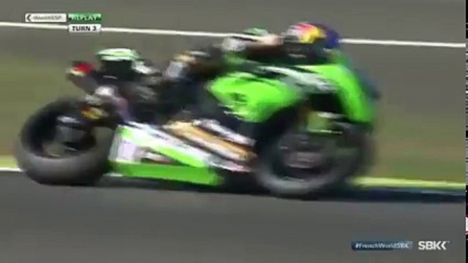 Dünya Supersport Şampiyonası'nda 5. şampiyonluğunu elde etmek için Fransa'da piste çıkan Kenan Sofuoğlu, motordan düşerek yarış dışında kaldı.