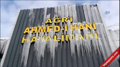 Ağrı ' da etkisini gösteren dondurucu soğuklar nedeniyle havalimanının duvarları bile buz tutarken, kimi vatandaş ise araçlarını battaniyeyle sararak korumaya çalışıyor.