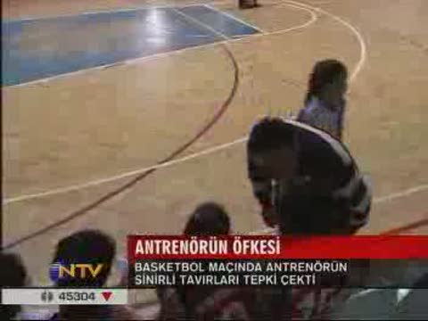 İlköğretim okulları arasındaki basketbol maçında antrönörün sinirli tavrı tepki çekti.