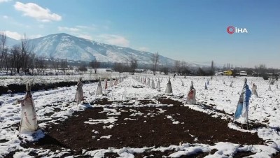 - Tokatlı çiftçinin meyve fidanlarını kar ve soğuk havadan korumak amacıyla uyguladığı yöntem dikkat çekiyor. Tokat merkeze bağlı Güzeldere köyünde çiftçilik yapan, evli ve 2 çocuk babası Cemalettin Kaya, daha önceden diktiği meyve fidanlarının soğuktan etkilenerek yanması sonucu önlem aldı. Malatya’dan satın aldığı ceviz ve badem fidanlarının yaklaşık 6 ay önce toprakla buluşturan Kaya, fidanları soğuktan korumak için sıra dışı bir yöntem denedi. Kaya, yaklaşık 120 adet fidanın zirai don ve kar yağışından etkilenmemesi için çuvalla kapladı. Yaklaşık 1,5 metre boyundaki fidanlarının üzerine çuval geçiren Kaya’nın önlemi görenleri şaşırttı. Çuvallı koruma Köylerinde kış mevsiminin sert geçtiğini ifade eden Kaya, “Geçen yıl diktiğim fidanların gözleri ve ışkılarının yanmaması için çuvalla korudum. Daha öncede yapmıştım. Çok faydasını gördüm. O nedene bu yıl diktiklerime de aynı yöntemi uyguladım. Bu yöntem sayesinde fidanın meyve veren gözleri yanmıyor. O nedenle bir yılımız heba olmuyor” dedi.