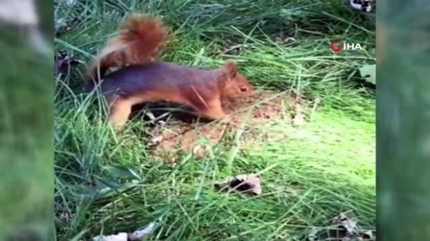 Hamarat sincap kışlık yiyeceğini böyle gömdü